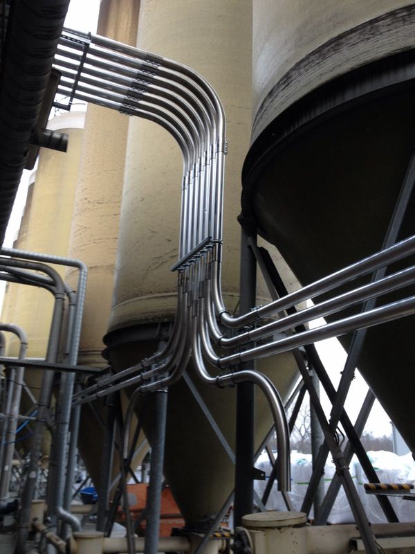 Cette installation est composée d’un groupe de vide et d’une unité de commande unique permettant l’alimentation en matière de l’ensemble d’un parc d'extrudeuses depuis 7 trémies tampons et via 21 silos. Le transfert matière vers l’ensemble des trémies est géré par un automate programmable et depuis une interface tactile de contrôle de 7 chargeurs pneumatiques. Elle est composé d’un groupe de vide fonctionnant avec 2 turbines en simultanées et également d'une troisième turbine en secours, et peut être évolutive dans le temps par l’adjonction de chargeurs matière supplémentaires.
