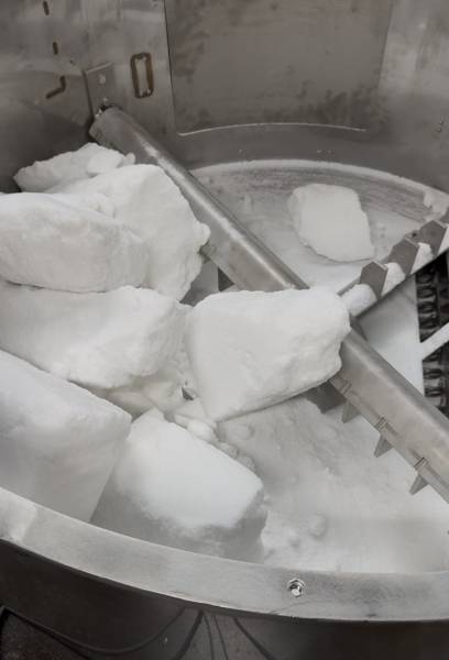 La station permet de concasser des matières prises blocs dans des sacs de conditionnements, afin de permettre leurs exploitations : transfert mécanique ou pneumatique, mélange, dosage.